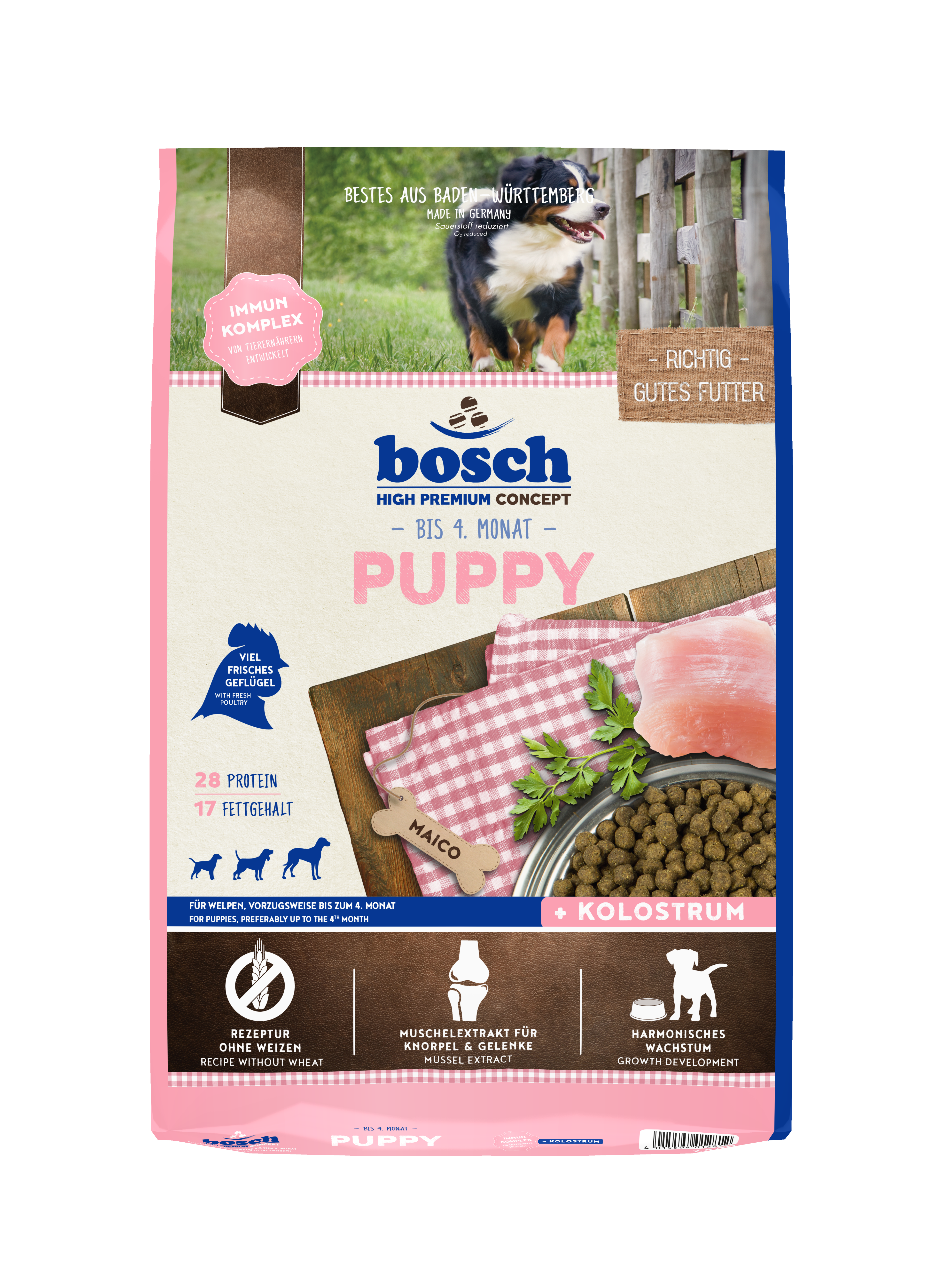 Durch den Zusatz von Kolostrum im Puppy wird das Immunsystem ebenso gestärkt wie durch den spezifischen Immun-Komplex aus Mannanen und Glucanen (von Tierärzten entwickelt).