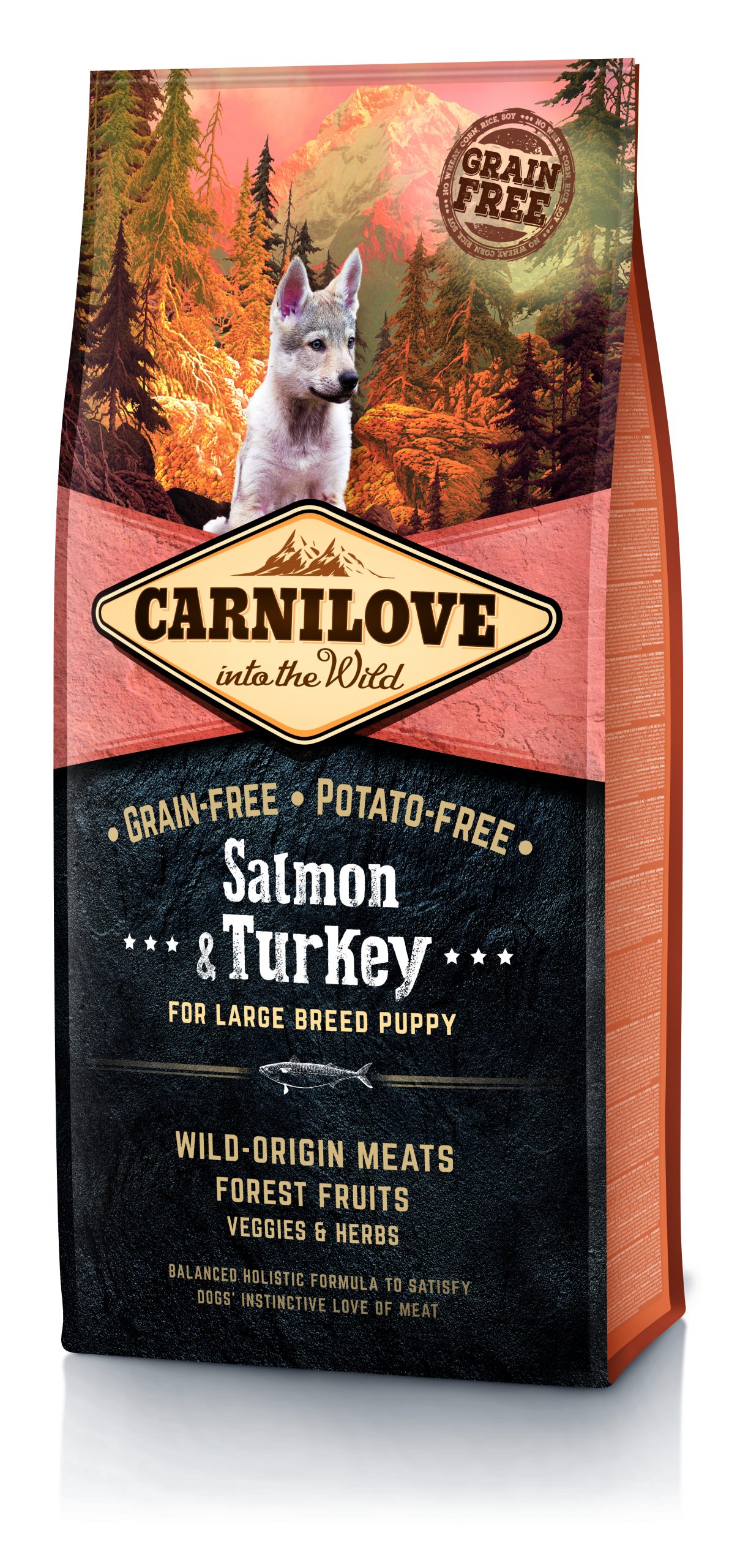 CARNILOVE Puppy Large Lachs & Truthahn eignet sich für Welpen grosser Rasse (Endgewicht ab 25 kg) und kann ab einem Alter von 3 bis 30 Monaten gefüttert werden.