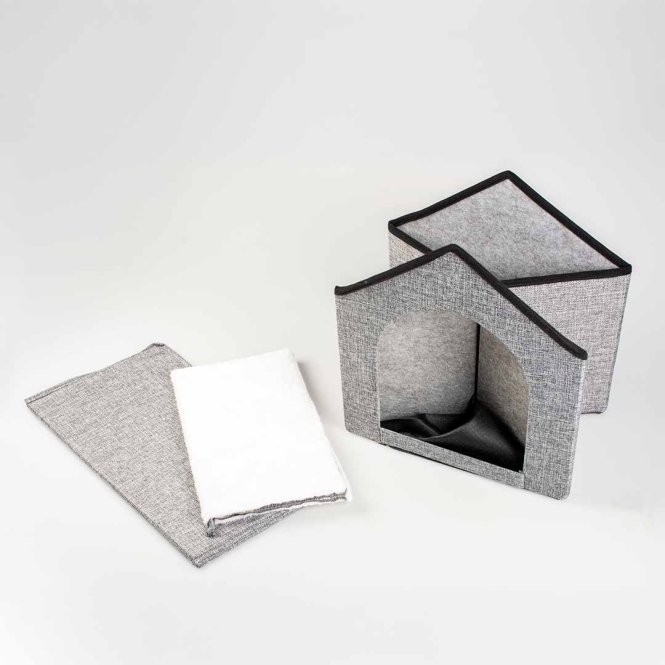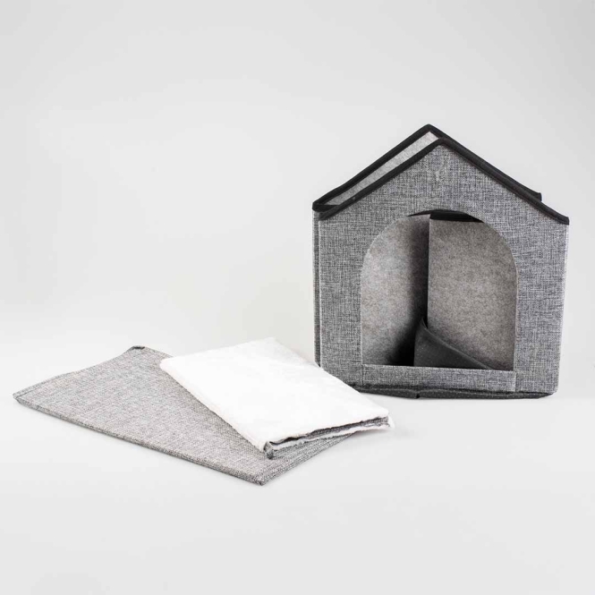 Das Katzenhaus Gilly von duvoplus ist ein gemütlicher und sicherer Rückzugsort für deine Katze. Das Häuschen kann leicht zusammengebaut und wieder auseinander genommen werden. Es hat ein modernes Design und ist kompakt, so dass es überall in deinem Zuhause leicht Platz findet. Inklusive herausnehmbarem Kissen. Geeignet für Katzen und Hunde.