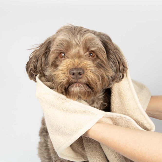 Nach dem Baden, Schwimmen oder einem matschigen Abenteuer ist das Noir Japandi Hundehandtuch die ideale Lösung, um Ihren Hund schnell und komfortabel zu trocknen. Es besteht aus weicher, hochsaugfähiger Baumwolle, die Feuchtigkeit effizient aufnimmt und sanft zum Fell ist. Dank der praktischen Griffe können Sie Ihren Hund mühelos abtrocknen. Erhältlich in stilvollem Beige, vereint das Noir Japandi Handtuch praktische Funktionalität mit zeitlosem Japandi-Stil.