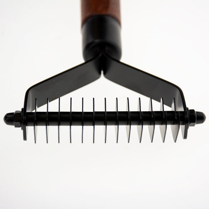 Trimmmesser von Noir Japandi aus verzinktem Edelstahl mitSchneidklingen zum schmerzlosen Entfernen von losen Haaren und Unterwolle. Die Klingen sind für zusätzliche Sicherheit abgerundet und haben einen ergonomischen Griff aus FSC-zertifizierter Buche mit dunkel gebeizter Oberfläche. Geeignet für Hunde und Katzen. Achtung! Verletzungsgefahr! Außerhalb der Reich- und Sichtweite von Kindern aufbewahren!