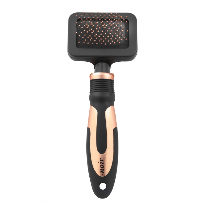 Diese weiche Slicker-Bürste von Noir hat weiche Edelstahl-Borsten zum wirksamen Entfernen von abgestorbenem Haar und Schmutz. Die sehr dünnen, gebogenen Borsten helfen Ihnen auch, das dicke Unterfell sanft und ohne Hautreizung auszudünnen. Der ergonomische Griff ist aus robustem ABS-Kunststoff für mehr Komfort für das Herrchen. Die Bürste ist für alle Katzen- und Hunderassen geeignet.