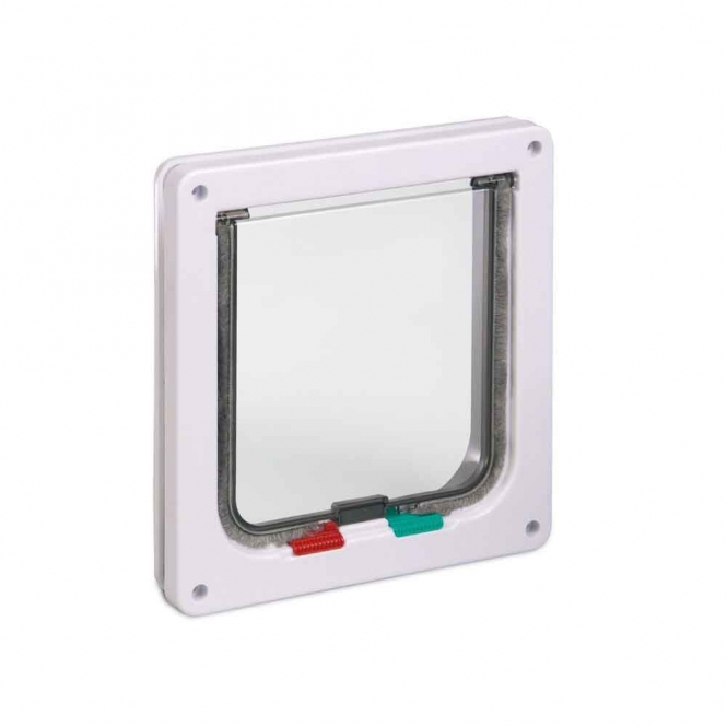 Sie bestehen aus einem Rahmen, einem Scharnier sowie einer horizontal befestigten Klappe. Letztgenannte wird vom Tier mit dem Kopf nach vorn geschoben, um dann durch die Öffnung zu gelangen. So kann die Katze selbständig und sicher zwischen Haus und Außenbereich wechseln. Ein Magnetverschluss und eine Bürstendichtung machen die Katzentür wetterfest und zugluftsicher. Dank des Verschlusssystems kann zudem gesteuert werden, ob die Katze beliebig hinaus- und hineingehen kann oder ob die Nutzung eingeschränkt wird. Die mechanische Katzentür mit 4-Wege-Verschluss bietet die Wahl zwischen geöffnet (hinaus und hinein) und geschlossen sowie den Optionen nur hinein und nur hinaus.