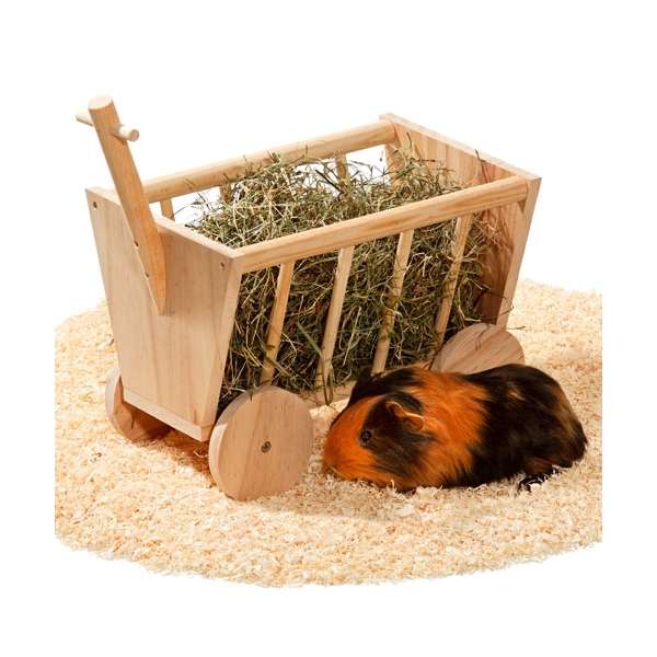 Die niedliche Heuraufe Bollerwagen besteht aus Echtholz und eignet sich ideal zum Befüllen mit Heu und Grünfutter.