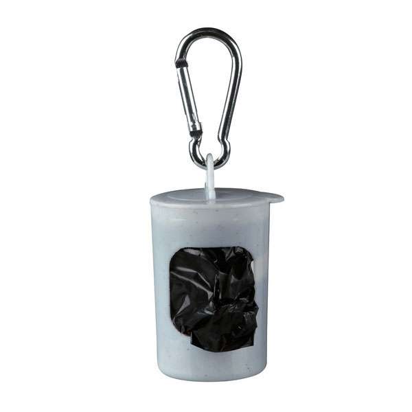Der Beutelspender aus stabilem Kunststoff verfügt über eine seitliche Öffnung, durch die die Kotbeutel ganz einfach herausgezogen werden können. Der Karabinerhaken ermöglicht eine Befestigung an Leine oder Halsband bzw. Gürtelschlaufe des Halters.